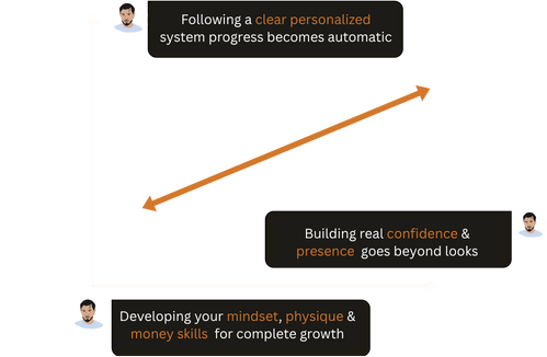 Every improvement makes the next step easier. Stronger body → sharper style → more confidence → more attention. Progress compounds, results last, and you unlock advanced guides as you grow.