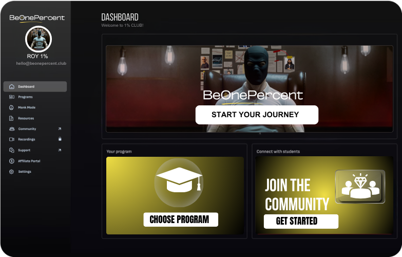 Build your personalized 1% Life system — master your body, mind, money, and looks with a clear step-by-step plan, completely free to join.